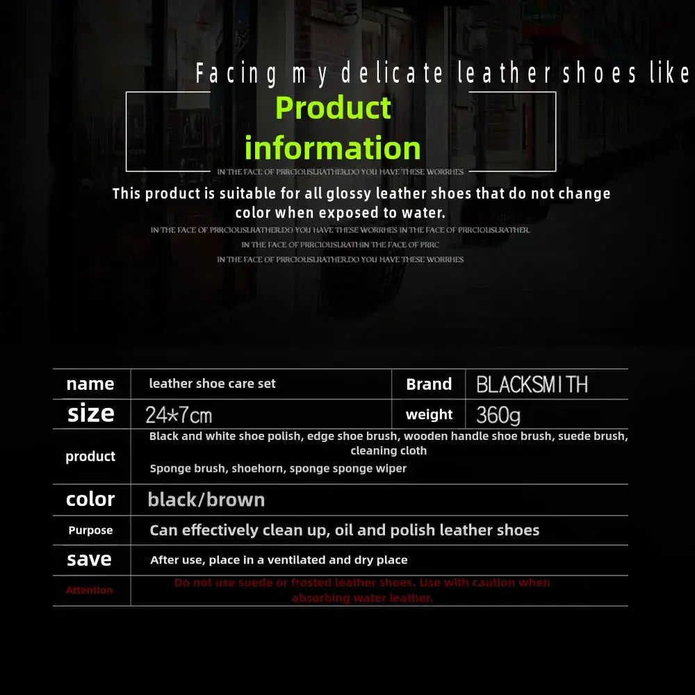 Leather shoe care kit ,Black 10-piece medium-tube set: small PP shoe brush, wooden handle sponge brush, black shoe polish, colorless shoe polish, 2 shoe cloths, metal shoe horn...