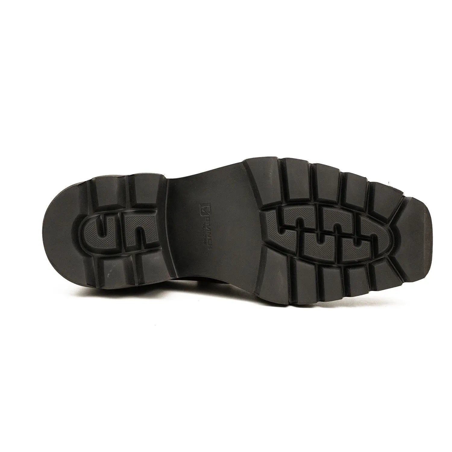 Showcase your bold sense of style with these patent leather derby shoes for men. Featuring a glossy black finish, these shoes bring a modern, sleek touch to the classic derby design. The chunky lug sole provides durability and excellent grip, while the striking red accents on the sole edge add a contemporary flair. Perfect for formal events, night outs, or making a statement with casual outfits, these versatile shoes are crafted for both comfort and impact. Elevate your footwear collection with these eye-catching patent leather derby shoes designed for the modern gentleman.