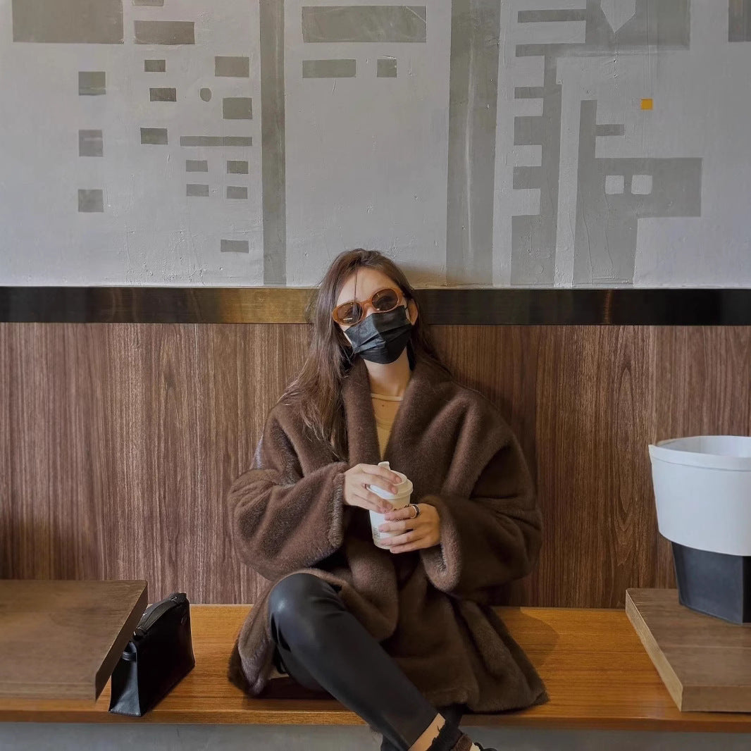 The medium length (65cm) and fashionable batwing sleeves create a striking silhouette that's both comfortable and stylish. Available in four elegant color options including coffee dyed tip, apricot dyed tip, classic black, and gray dyed tip, each featuring beautiful ombre effects.