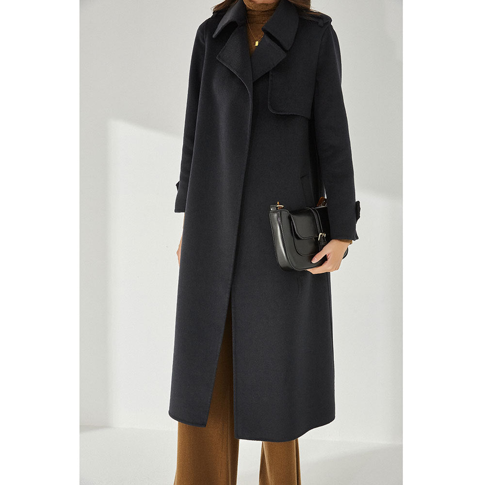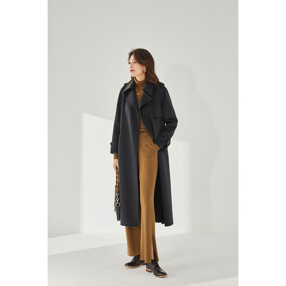 Embrace sophisticated urban style with this elegant women's wool blend long coat featuring a unique tie placket and included belt. Crafted from premium wool (51%-70%) blended with polyester and bamboo fiber, this coat offers the perfect balance of luxury and practicality.