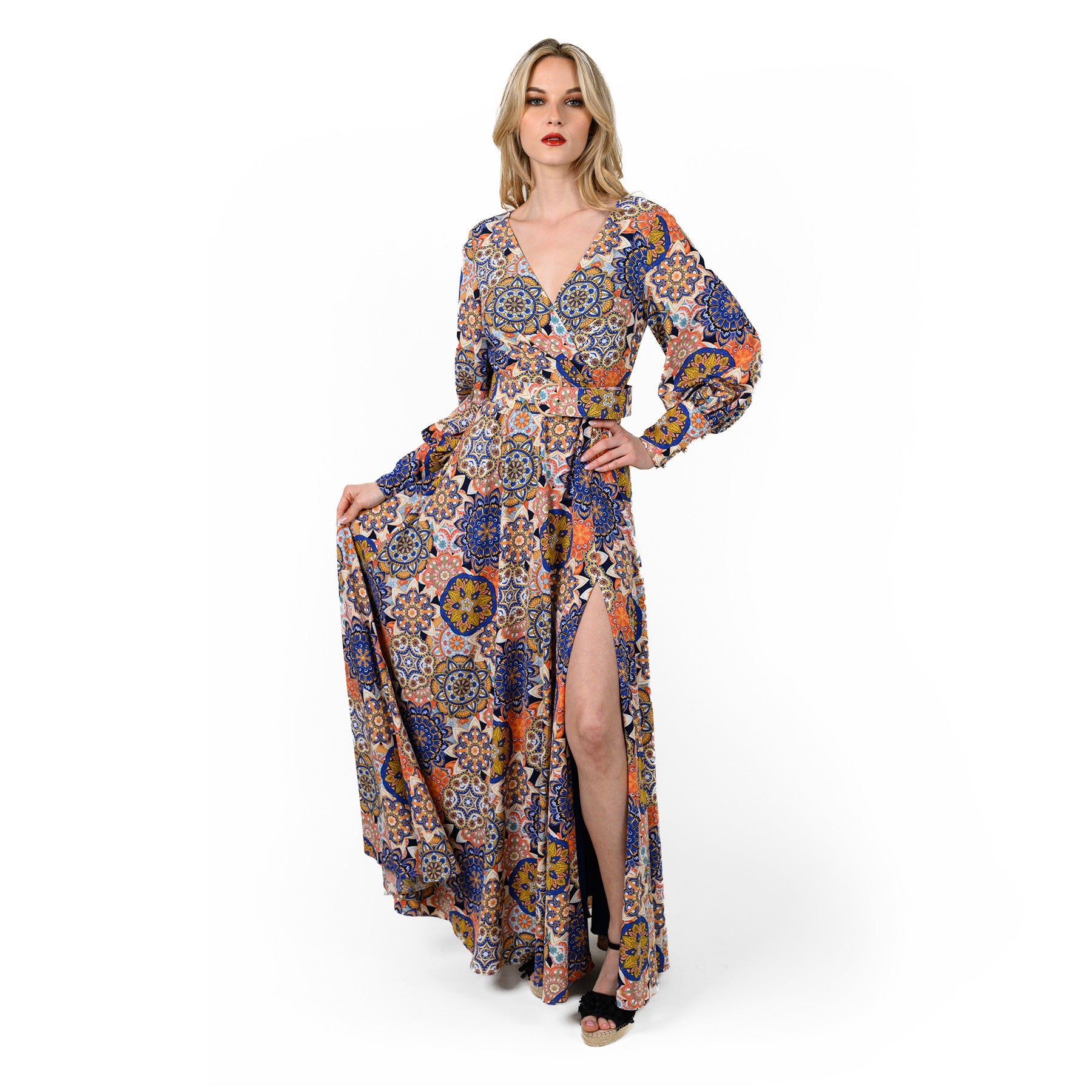 Give in to florals this season with this printed material dress with structured design. What’s not to love? Wear it with lace-up heels for a look that will get you noticed. This colorful maxi dress lends a lively flourish to your everyday routine.