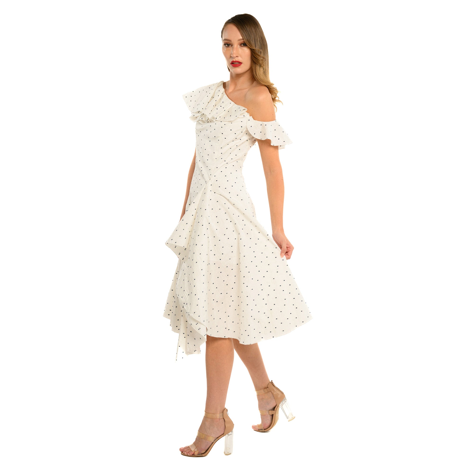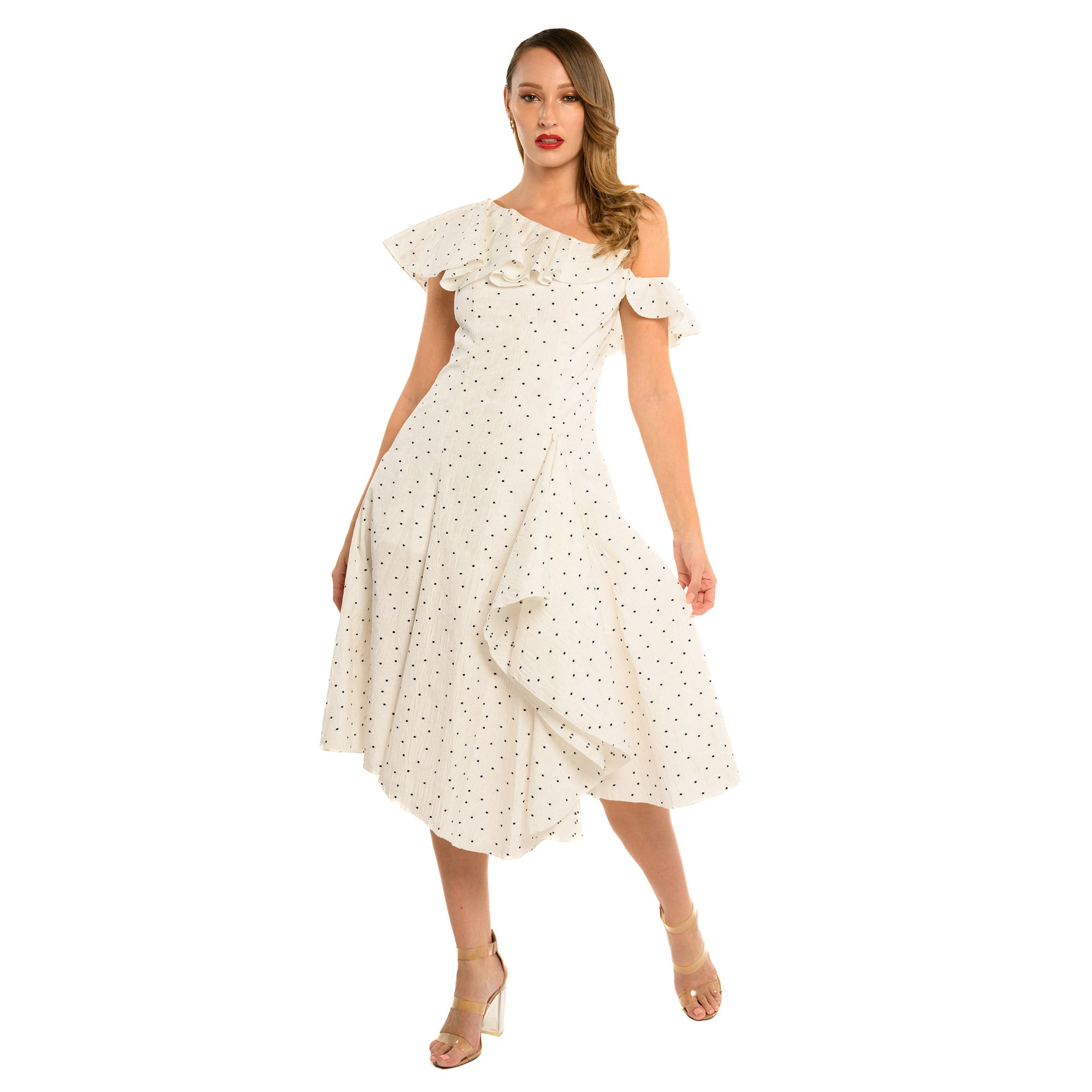 The Grace has an array of exceptionally stunning designs--from its asymmetric neckline and flowy bottom to its ruched style over the legs and silhouette! Its Novelty Jacquard fabric joins with an adorable polka dot pattern - so chic and endearing. Every piece is an artful combination of sophisticated style and playful charm - you'll love how you look and feel!