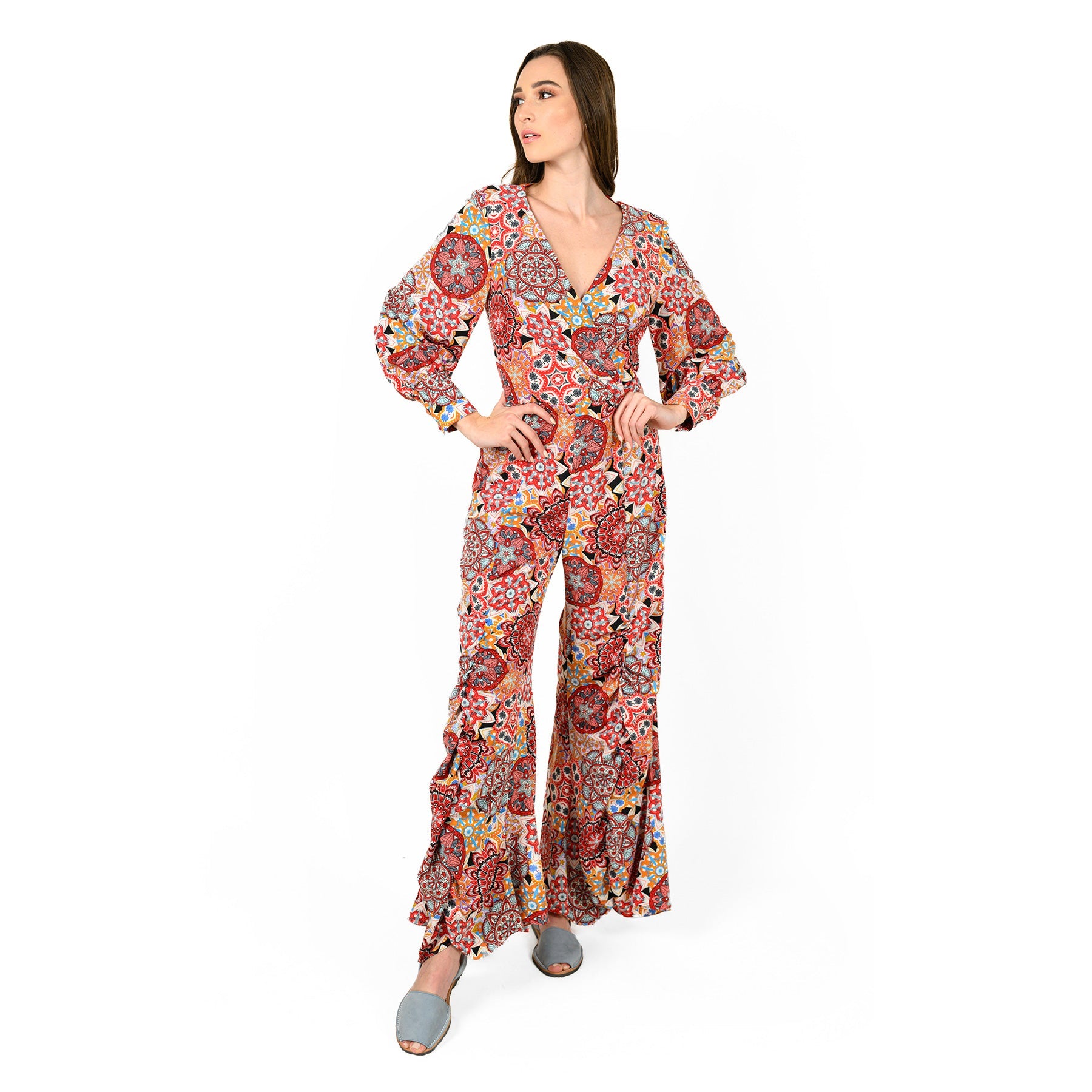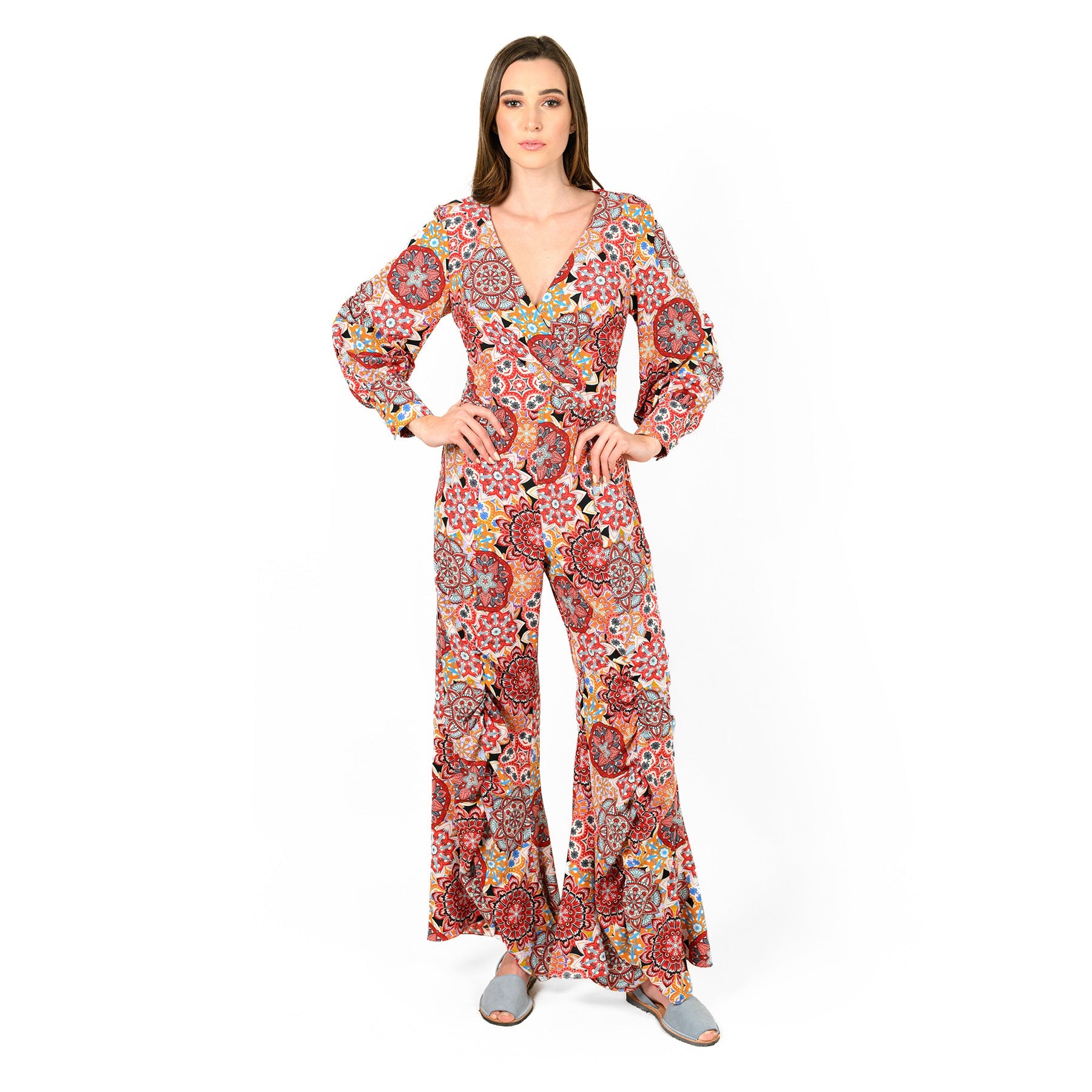 This multi-floral jumpsuit is perfect for any occasion. Featuring a multi floral print, a v-neck design and a wide leg cut. Pair it with heels and a mini bag for a look we're obsessing over.