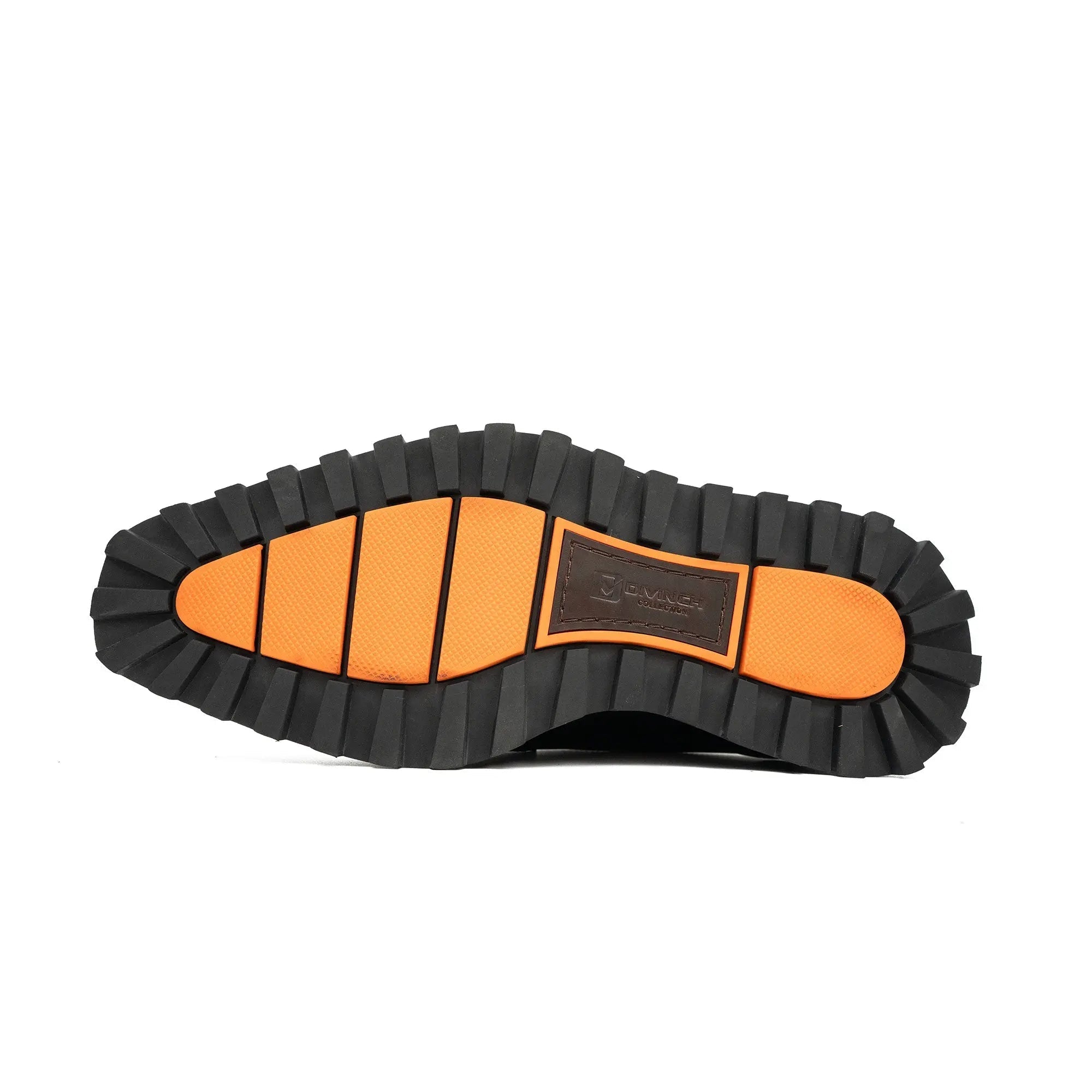 The full-grain calfskin leather upper of these formal brogue derby shoes is both supple and durable, promising to develop a rich, beautiful patina over time. The brogue-style detailing adds a touch of classic elegance, while the sleek, squared toe box offers a refined, contemporary look with ample room for comfort. The leather-lined insoles adapt to the shape of your feet, creating a custom-like fit for maximum comfort. The calfskin leather lining effectively manages temperature, absorbs sweat, and controls odors, ensuring freshness throughout the day.