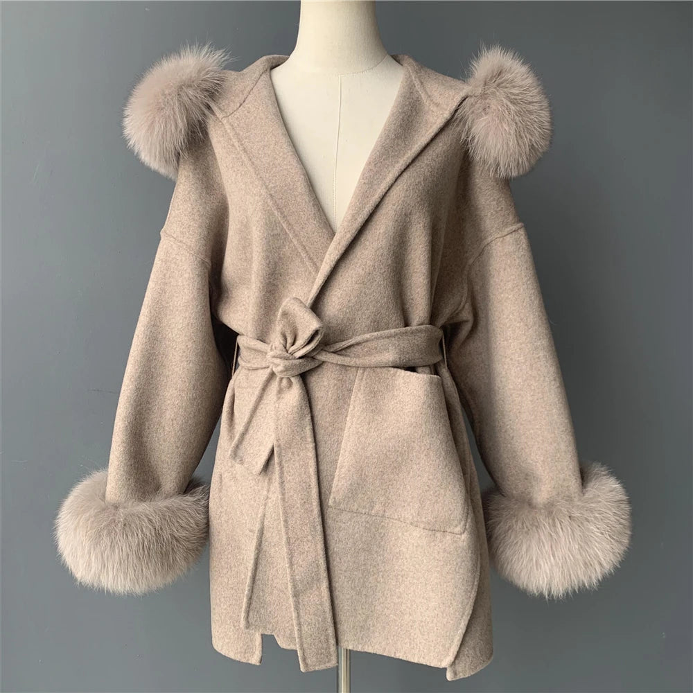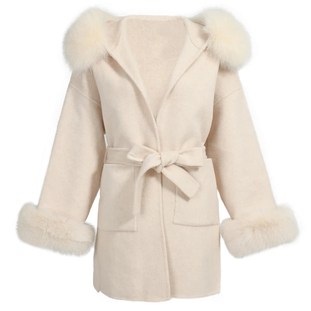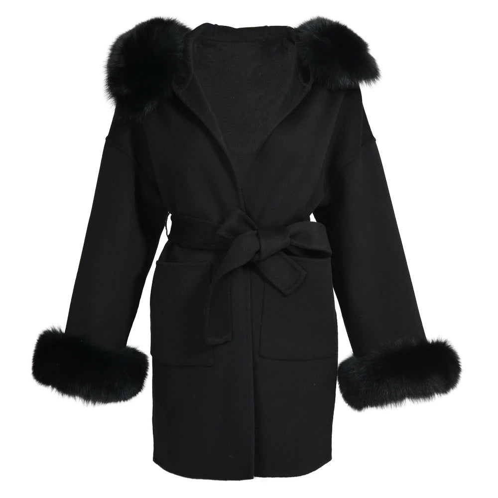 Experience ultimate luxury with our premium cashmere wool coat featuring genuine fox fur. This exquisite 100% handmade coat combines the warmth of cashmere and wool blend with the opulence of real fox fur, creating a stunning statement piece for the discerning woman.